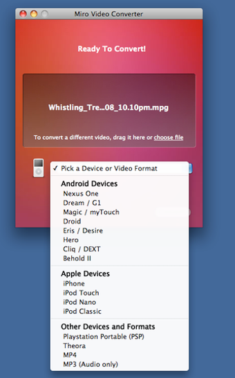 Miro Video Converter è un'applicazione gratuita per Mac progettata per facilitare la conversione di file video in vari formati. Questo software si distingue per la sua interfaccia intuitiva e per la semplicità d'uso, rendendo accessibile a tutti la possibilità di trasformare video per diversi dispositivi e piattaforme. Il programma supporta una vasta gamma di formati, permettendo agli utenti di adattare i propri video a smartphone, tablet e lettori multimediali senza complicazioni.